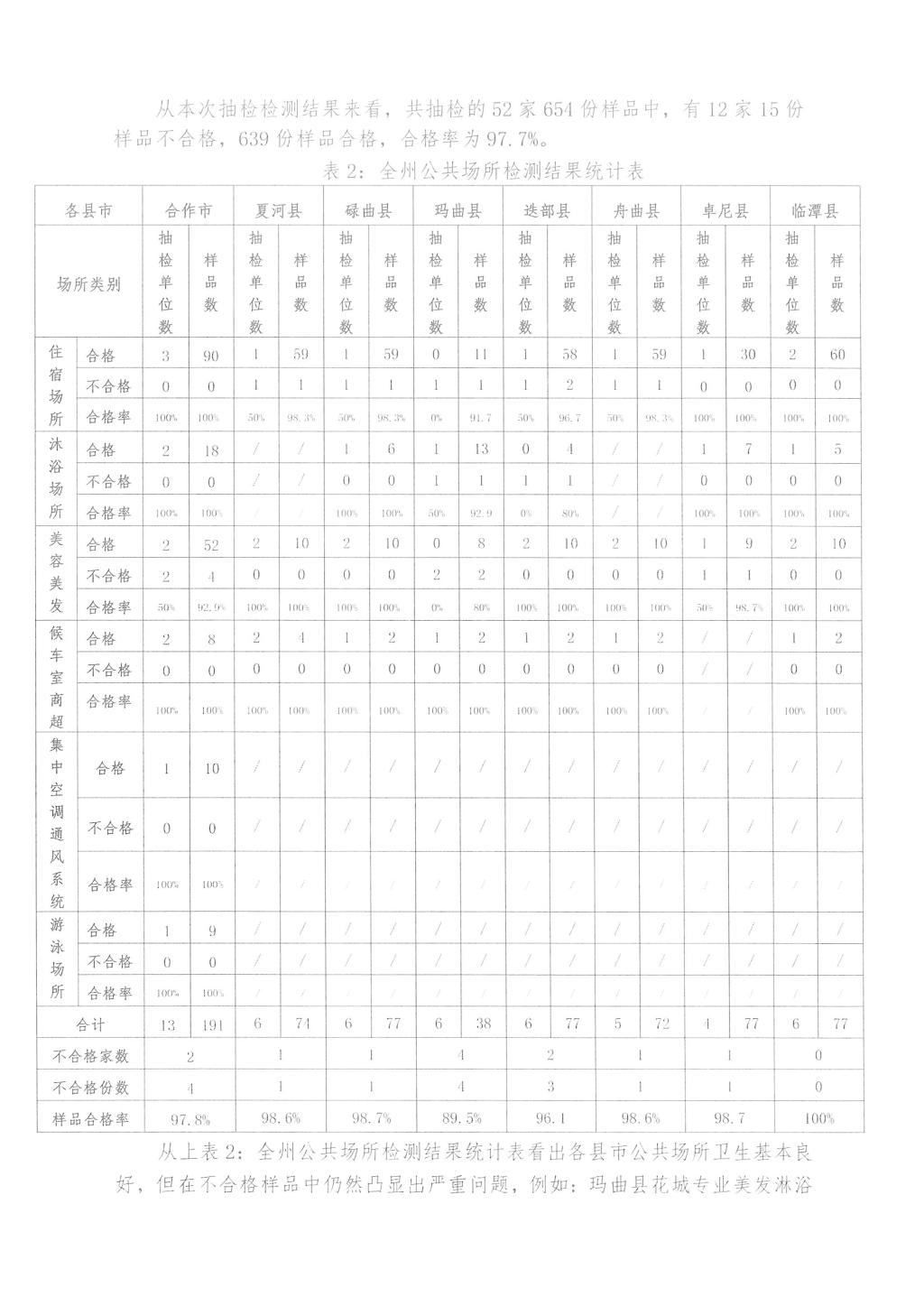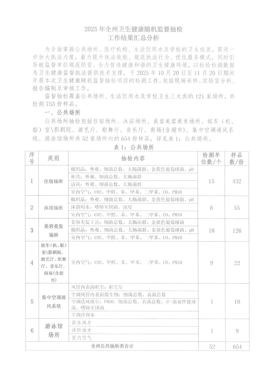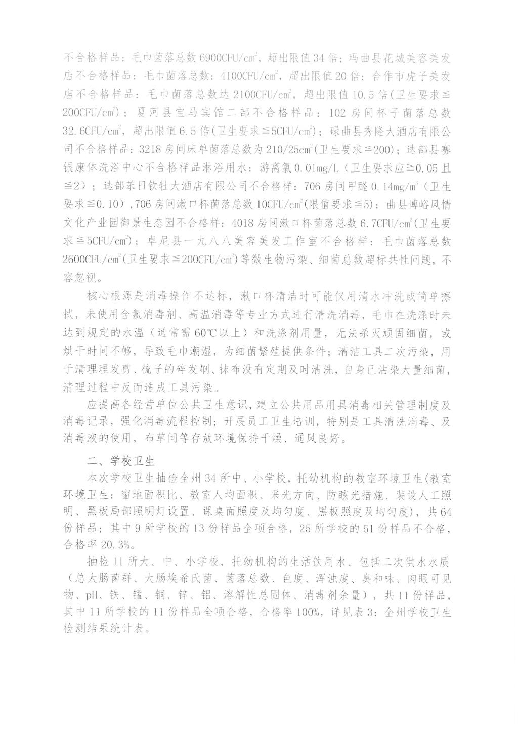 2025年全州卫生健康随机监督抽检公共场所结果公示