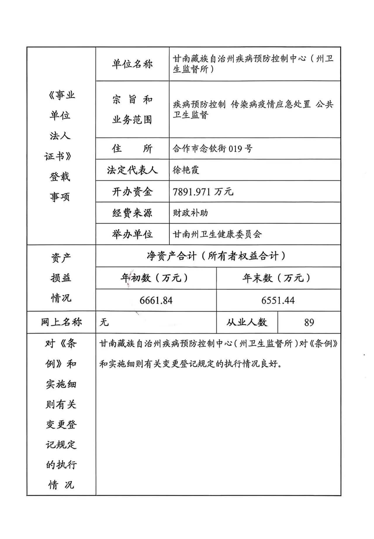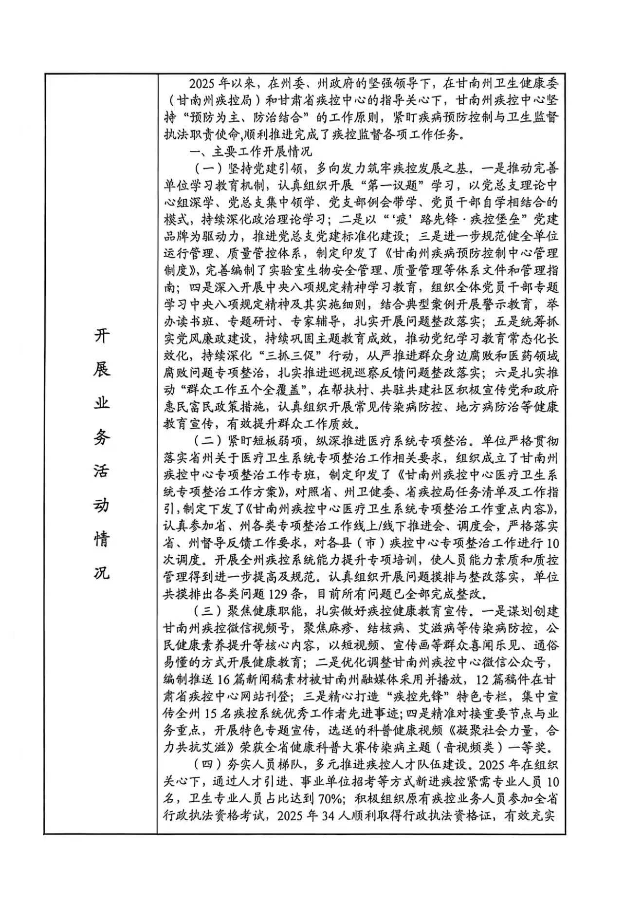 州疾病预防控制中心(州卫生监督所)2025年度事业单位法人年度报告表